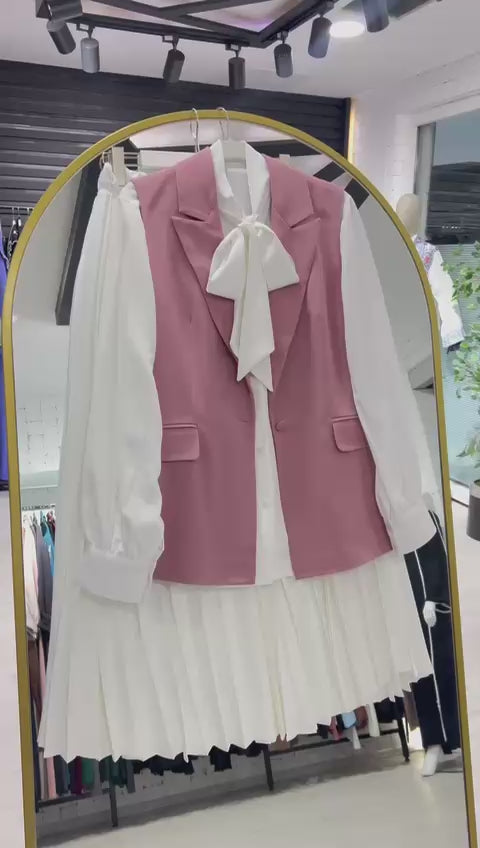 Mayar 3-piece set: skirt, jacket, and shirt (pink/white)