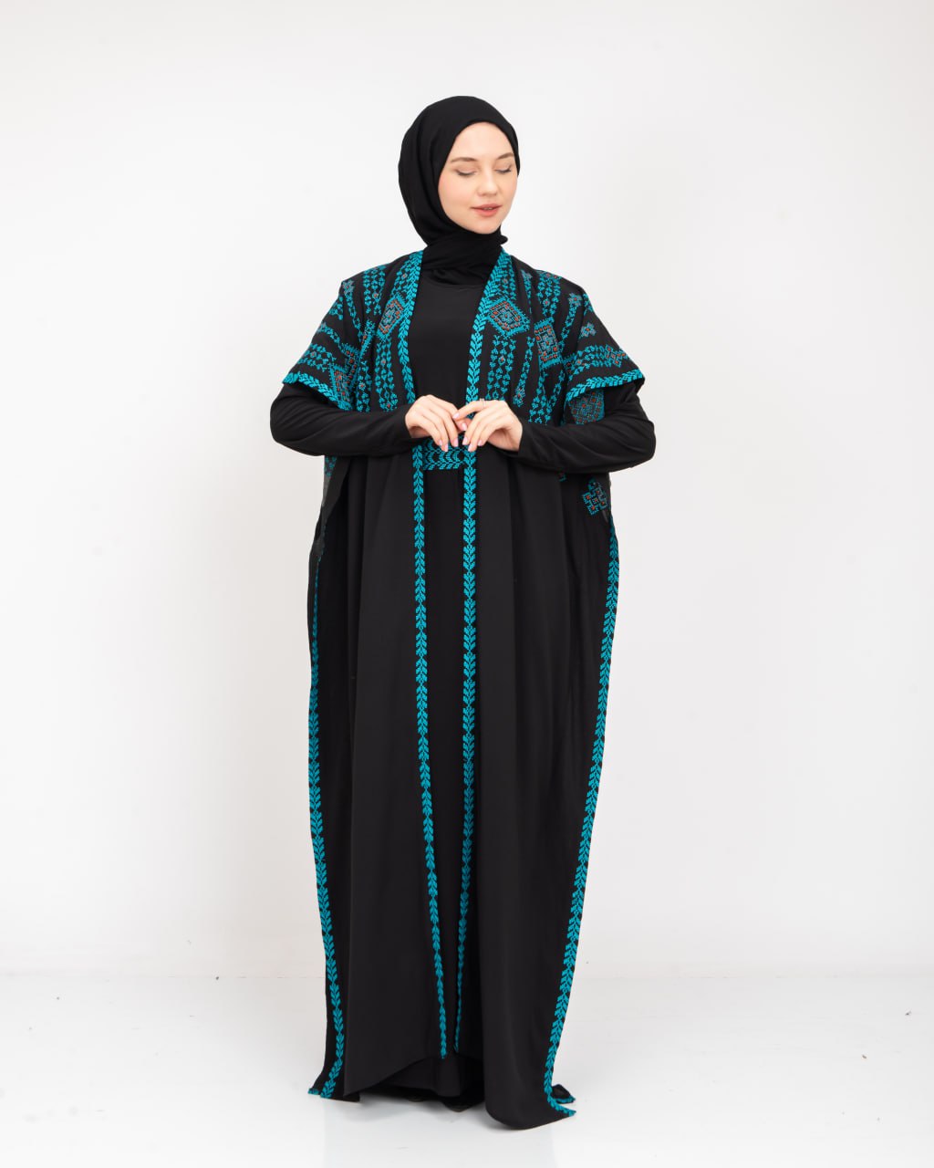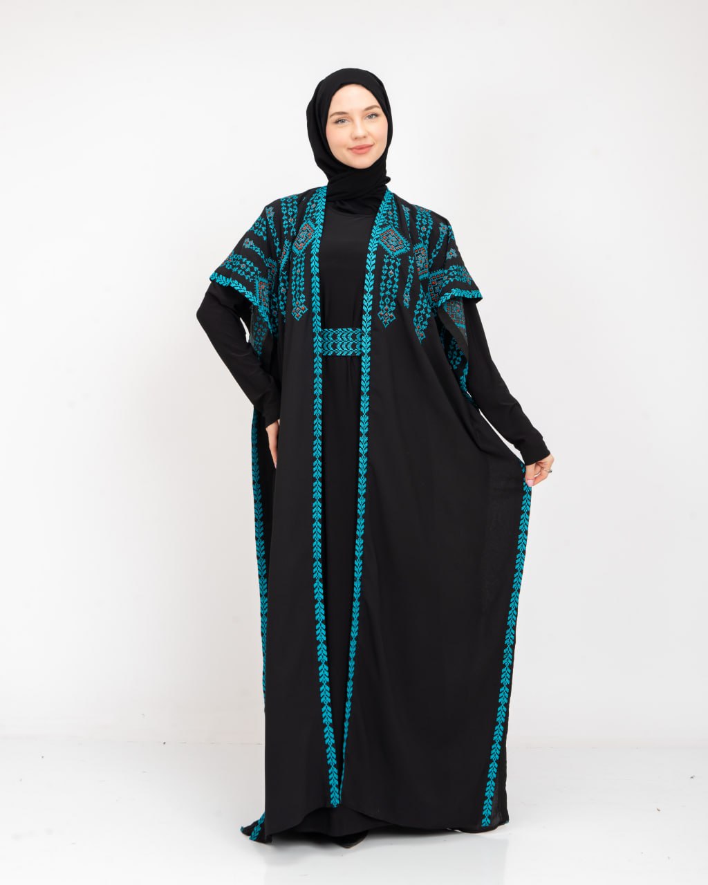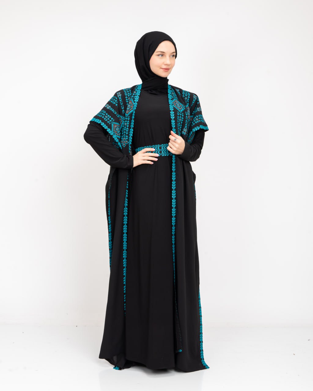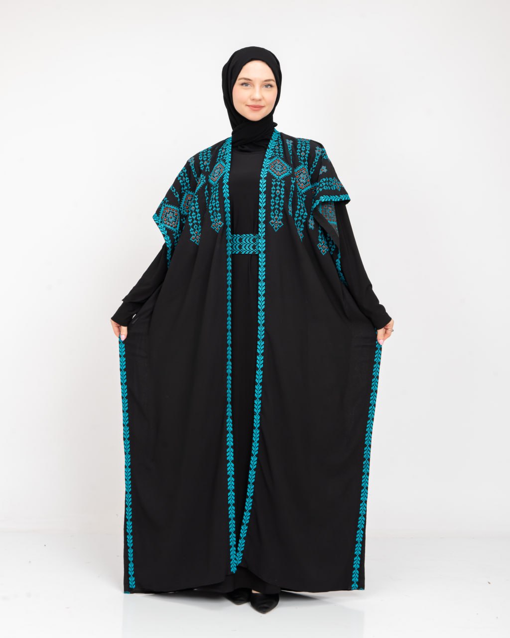 طقم الدرة المطرز بالنقش الفلسطيني(تطريز ازرق) قطعتين