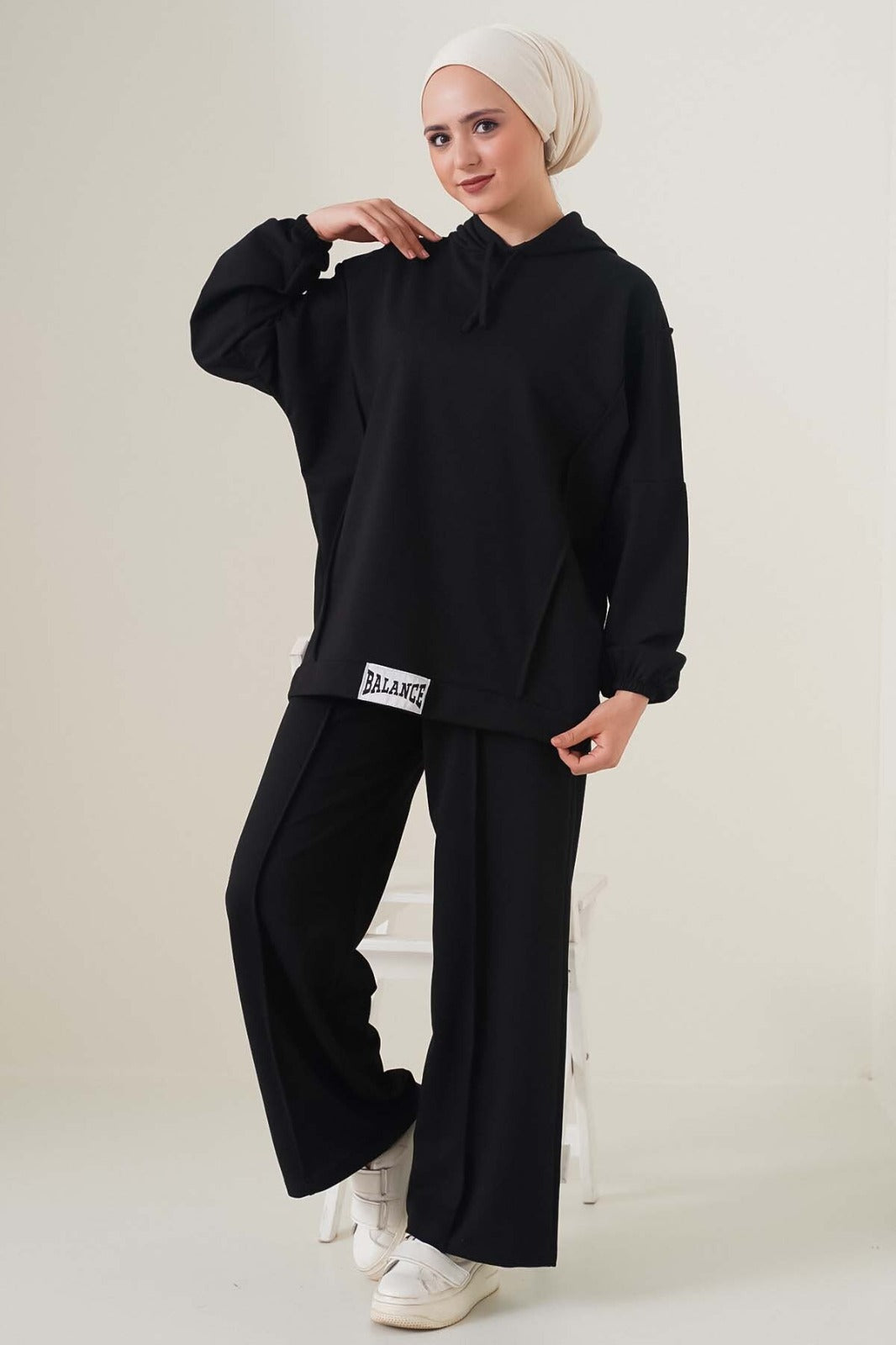 طقم بالنس قطعتين بلوزة بكابيشون وبنطلون (اسود) 1818