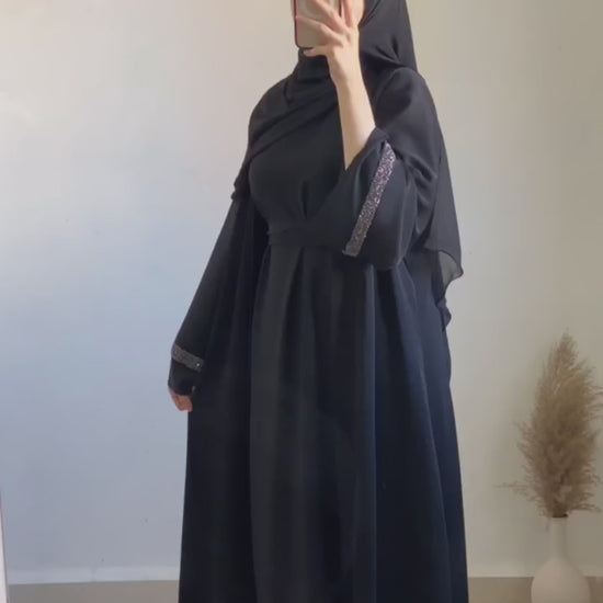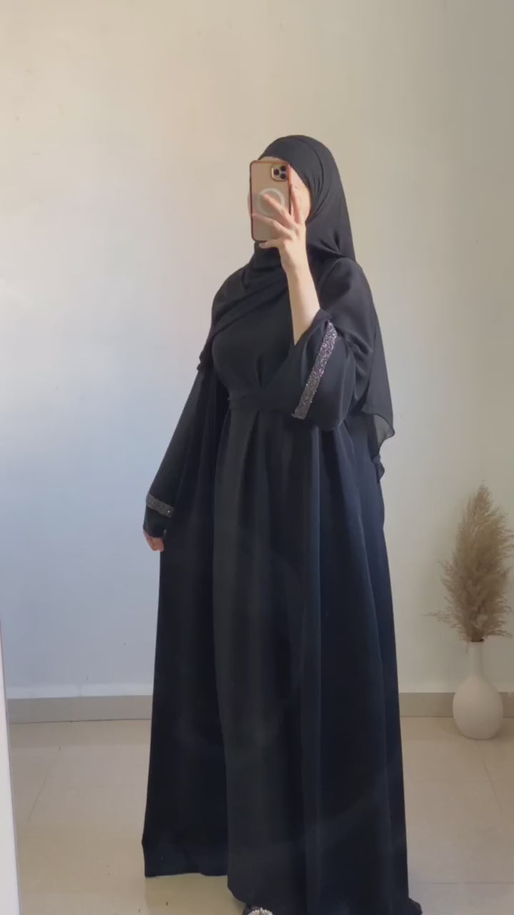 طقم غفران مزين بستراس على الأكمام لون (اسود)