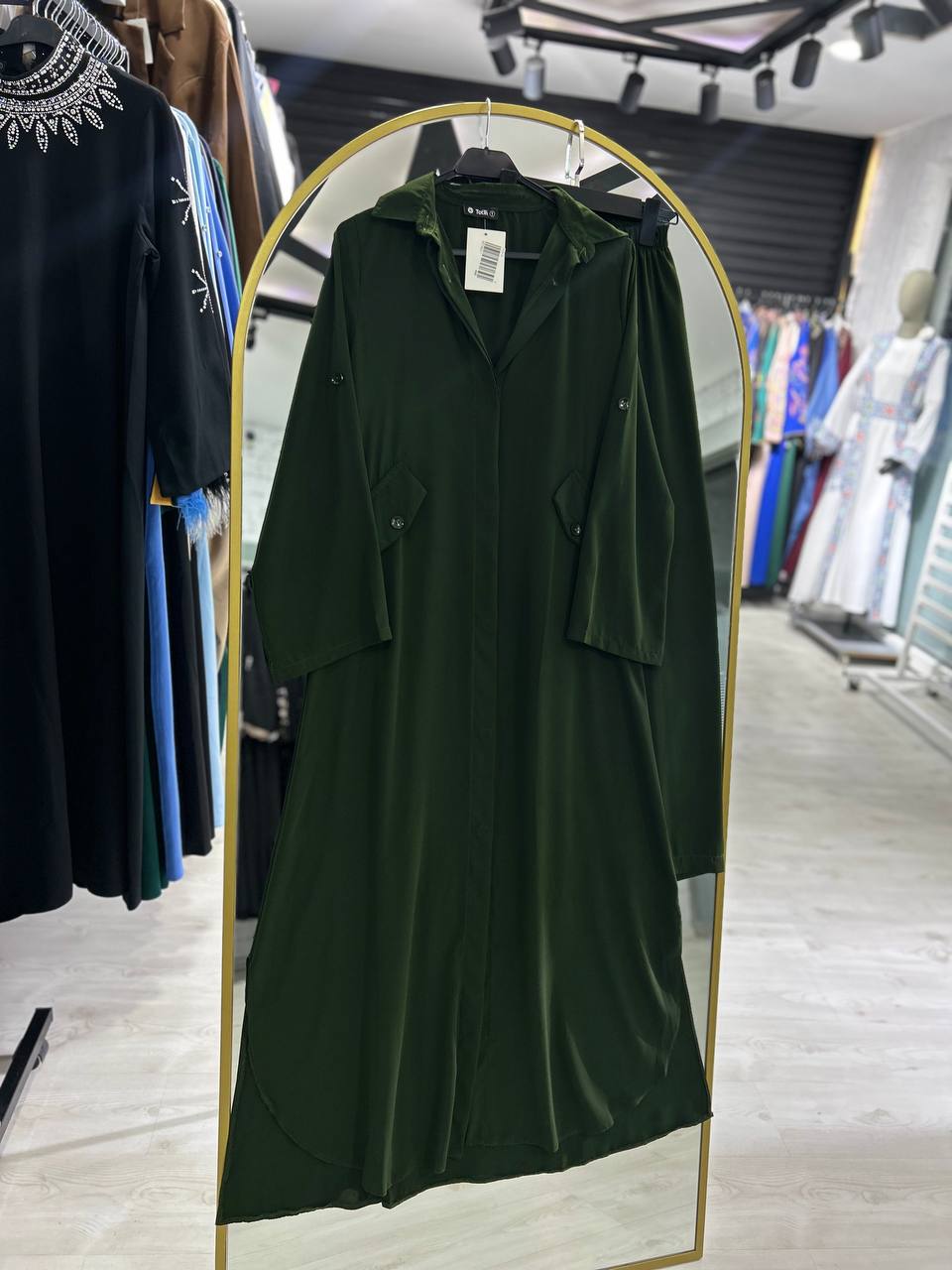 طقم هلا الشرعي مزين بجيوب وازرار مخفية لون (زيتي)