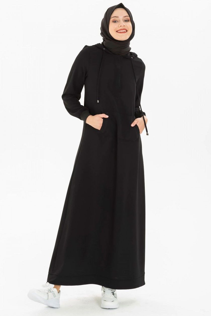 عباية عملية بأكمام زم (أسود) 1429