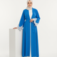 نوع القماش: دبي. rnrnعدد القطع :مؤلف من 2 قطع . rnrn_القطعة الاولى :عبايه طويلة . rnrn_القطعه الثانية :فستان داخلي لونه سكري . rnrn•طول القطعة 147 سم
