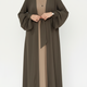عباية ليندا مكونة من قطعتين لون زيتي وبيج 3028