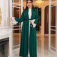 نوع القماش: دبي. عدد القطع :مؤلف من 2 قطع . _القطعة الاولى :عبايه طويلة . _القطعه الثانية :فستان داخلي لونه سكري . •طول القطعة 147 سم