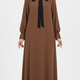 فستان توليب بياقة أنيقة وأكمام مزمومة (بني) 1529