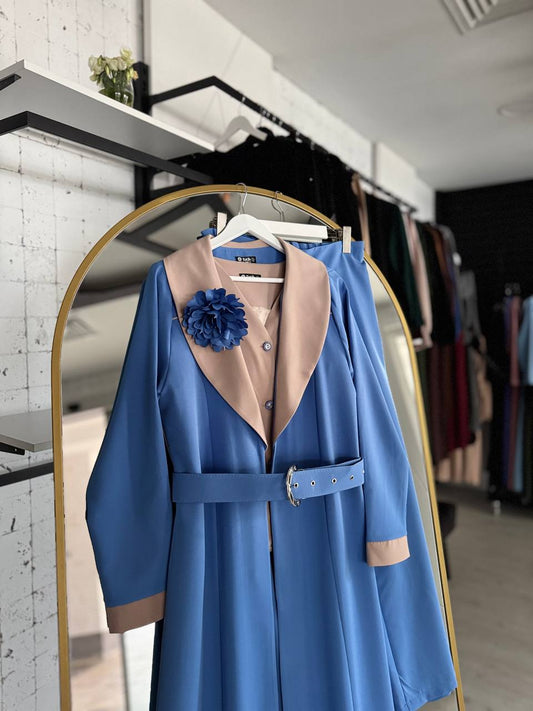 Elbise ve uzun tesettürden oluşan Malezya takımı, lacivert 1404