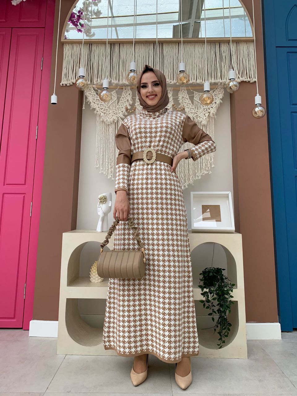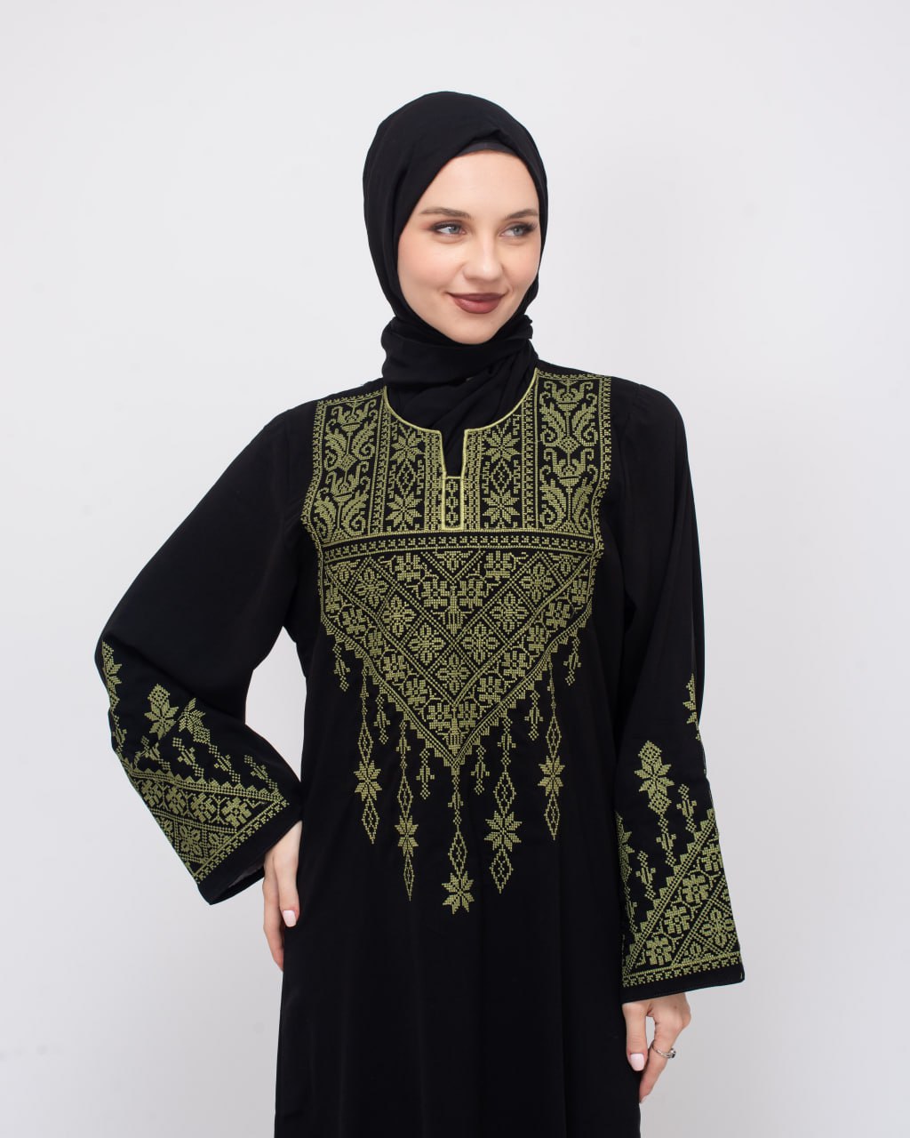 (Kahverengi) Filistin desenleriyle işlenmiş Safad elbisesi