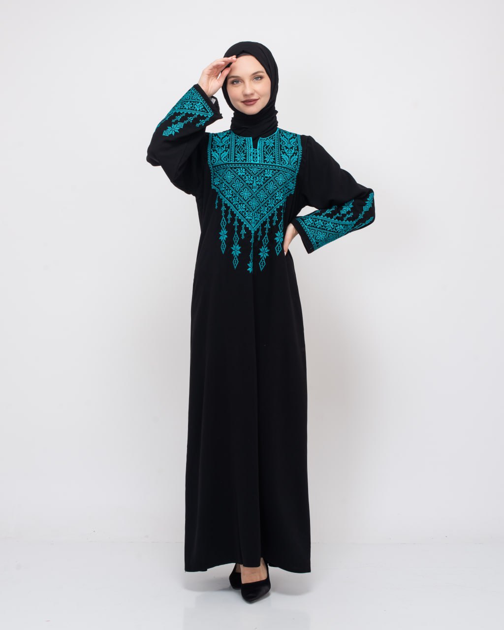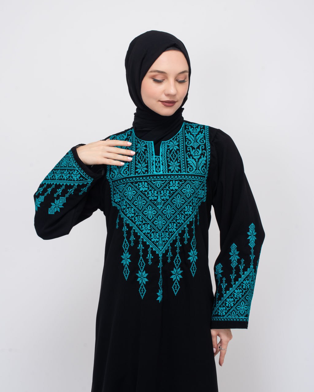 (Mavi) Filistin desenleriyle işlenmiş Safad elbisesi