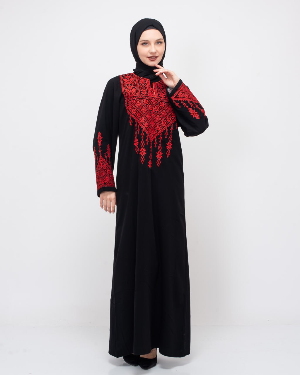 (Kırmızı) Filistin desenleriyle işlenmiş Safad elbisesi