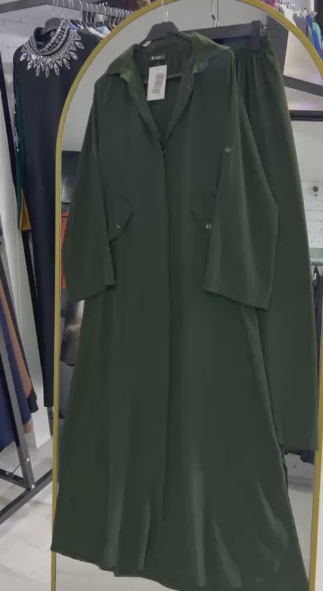 Hala Sharia cepli ve gizli düğmeli set, zeytin rengi