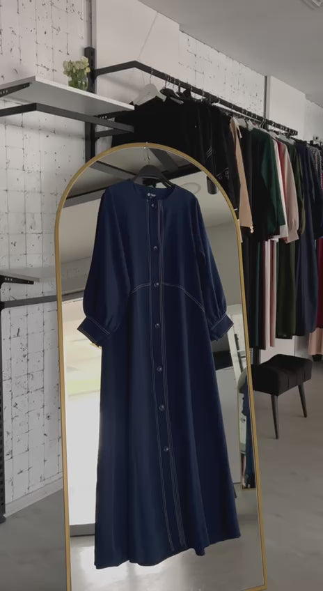Göğüs ve kol kısımları işlemeli Asya Abayası, rengi (Şami mavisi)