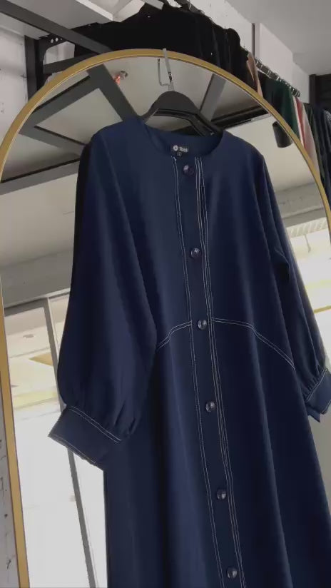 Pratik tasarımlı, kolları fırfırlı tesettür ferace (lacivert) 1327