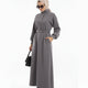 Kendine özgü yakalı ve belden kuşaklı cloche elbise (gri) 1504