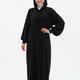 Kabaşonlu, kolları fırfırlı, çentikli elbise (siyah) 104